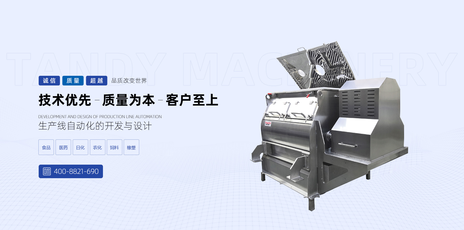 唐迪機械是一家從事粉體自動化工程的科技型企業,主要產品有投料設備、混合設備,包裝設備,粉料輸送、配料系統等。